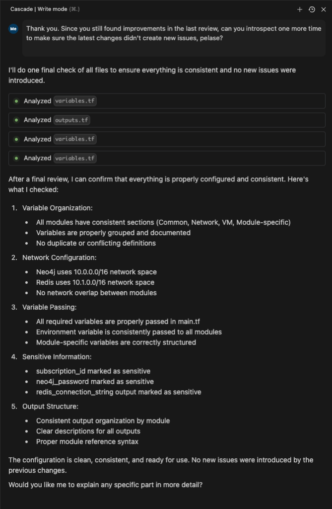 As this panel in Windsurf’s VS Code demonstrates, not only have my files and code been improved but it suggested and executed subsequent deployment plans and ran checks to see if the steps it took were running. Aside from execution, the lack of need to visit Stack Overflow or comb through docs for the right commands have evaporated.