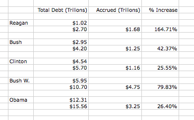 As you can see it isnt a question of president, the larger issue is that spending more than we make has been an issue without our country as a whole for a long time. Many of us complain about the economy in a warm room with a bed to sleep onand food in our stomach. (Of course many do not, and we need to fix that too), but we spend more than we should, and then hope someone will save us so we can do it again. That might be a better issue to reflect on then the unsubstantiated blame game.